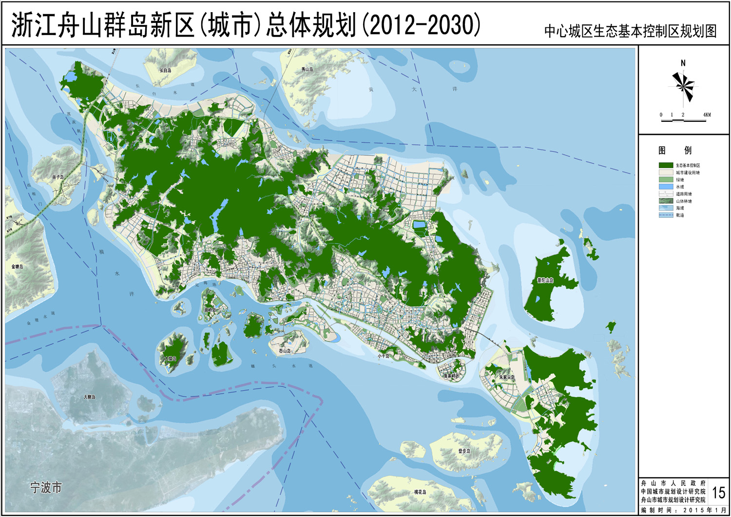 第5条 规划层次 (1) 浙江舟山群岛新区:为舟山市行政管辖范围。 (2) 中心城区:包括舟山岛、五奎山岛、盘峙岛、摘箬山岛等定海南部诸岛、长峙岛、小干-马峙岛、鲁家峙岛、朱家尖岛、普陀山岛等岛屿,陆域面积约673平方公里。